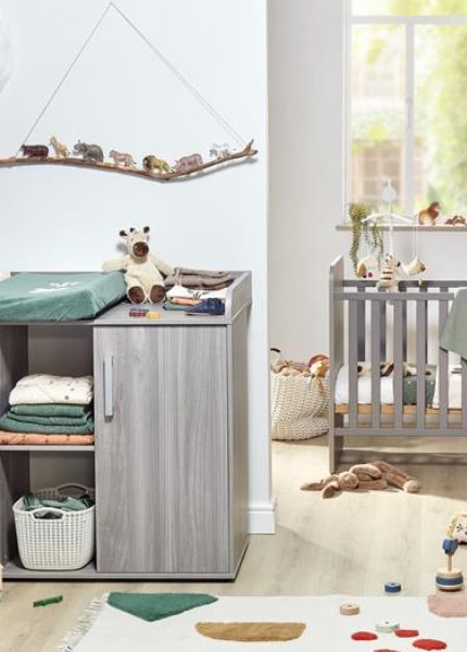 Creëer een gezellige sfeer in je babykamer dankzij de grijze eiken meubels van Nolan. Alle meubels zijn gemaakt van spaanplaat met een melamine afwerking. Deze slijtvaste, hoogwaardige afwerking bladdert of verkleurt niet en is heel gemakkelijk te onderhouden. Het extraatje in deze collectie? De meubels zijn snel en eenvoudig in elkaar te zetten.