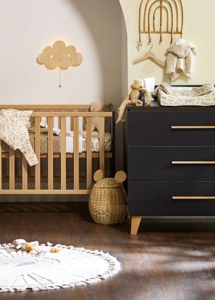 Op zoek naar een zwarte babykamer met de elegantie van hout? Maak kennis met de Steffi zwarte babykamer! De Steffi zwarte babykamer is ontworpen om je baby de eerste jaren te begeleiden en is voorzien van een ledikant, een ledikantbed, een commode die als commode gebruikt kan worden en ruime opbergkasten met zachte sluiting. Het is niet alleen praktisch, het is ook snel in elkaar te zetten, wat het leven makkelijker maakt!