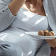 Veillez à choisir un pantalon fabriqué dans des matières extensibles, qui s’adapte à votre morphologie changeante. Comme pour vos vêtements habituels, prenez en compte les saisons. En hiver, le denim et le velours vous tiendront bien chaud. Optez toutefois pour des matières légères et respirantes comme le coton et le lin dès que le soleil pointe le bout de son nez.