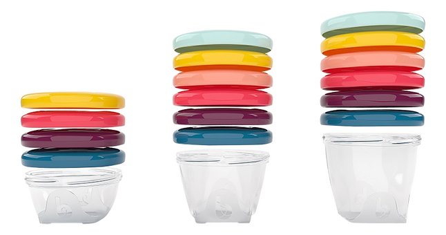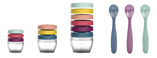 Les Babybols avec couvercle (3 x 120 ml, 3 x 180 ml en 6 x 250 ml) et les 3 cuillères en polypropylène résistent à la congélation, au micro-ondes et au lave-vaisselle.