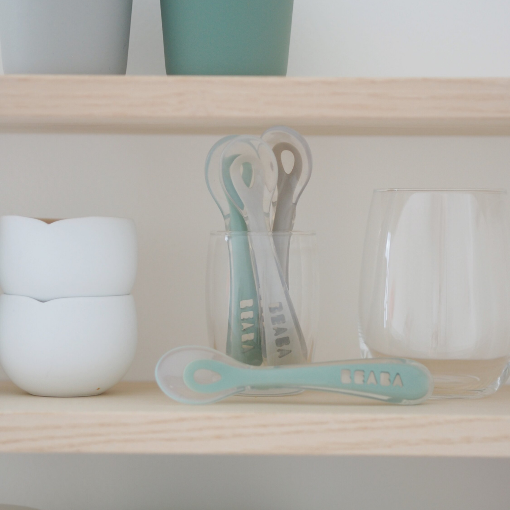 Béaba Cuillère en silicone 2e âge Velvet grey/Sage green - 4 pièces