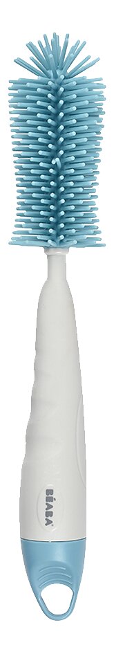Embout souple pour nettoyer les tétines.- Brosse ronde : permet de nettoyer tous les biberons, peu importe leur forme.