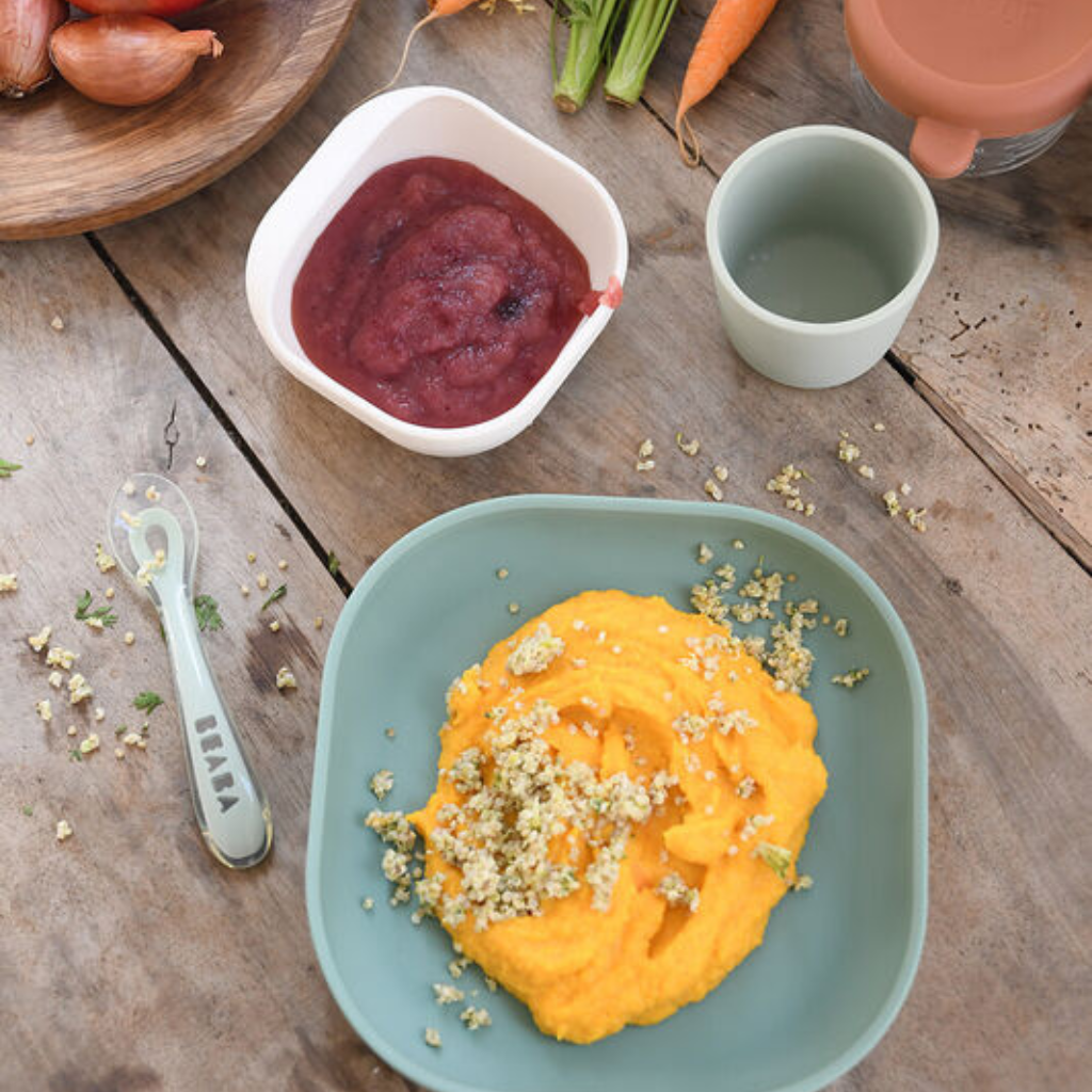Béaba Set de repas en silicone Sage Green/Gray Green - 4 pièces