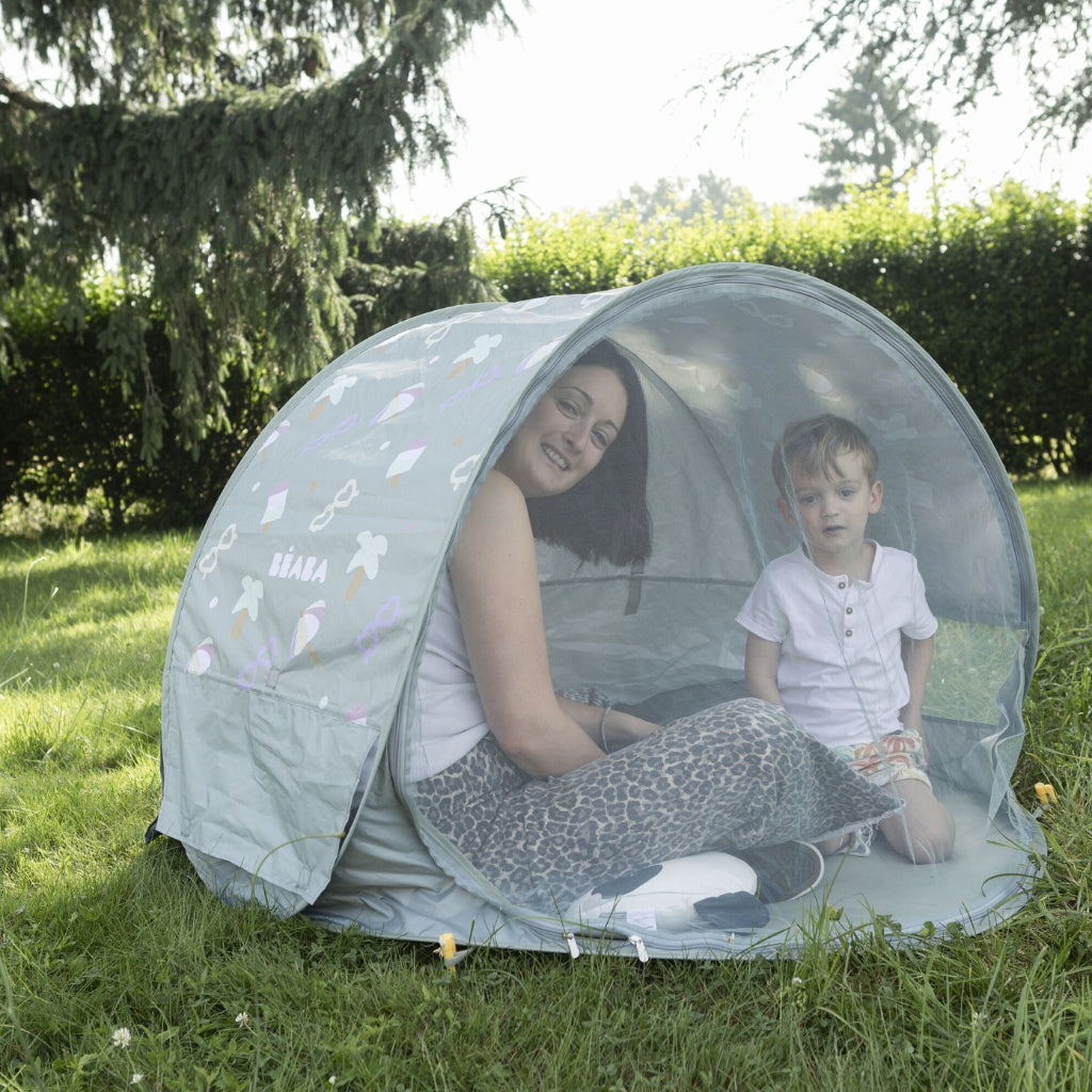Découvrez la tente anti-UV Breezy de Béaba, disponible dans un élégant coloris kaki. Protection solaire parfaite (UPF 50+), ventilation à 360° et espace généreux pour les parents et les enfants.