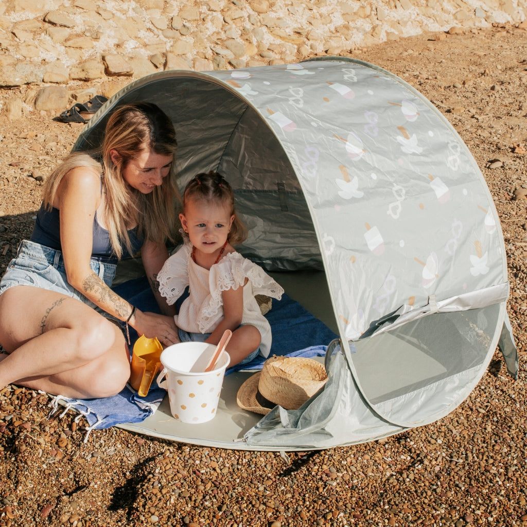La tente anti-UV Breezy a été conçue pour le confort de votre enfant et le vôtre. Grâce à sa structure bien ventilée avec trois ouvertures latérales et des rabats en tissu, l'air continue de circuler et la chaleur extrême est évitée. La tente est suffisamment spacieuse pour accueillir un adulte et un enfant, ou plusieurs enfants, afin que vous puissiez facilement donner le biberon ou allaiter à l'ombre.