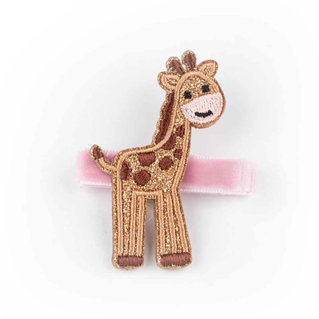 Joyeux clip rose Busy Lizzie avec motif girafe, parfait pour les enfants à partir de 3 ans. Ajoute une touche ludique à toutes les tenues !