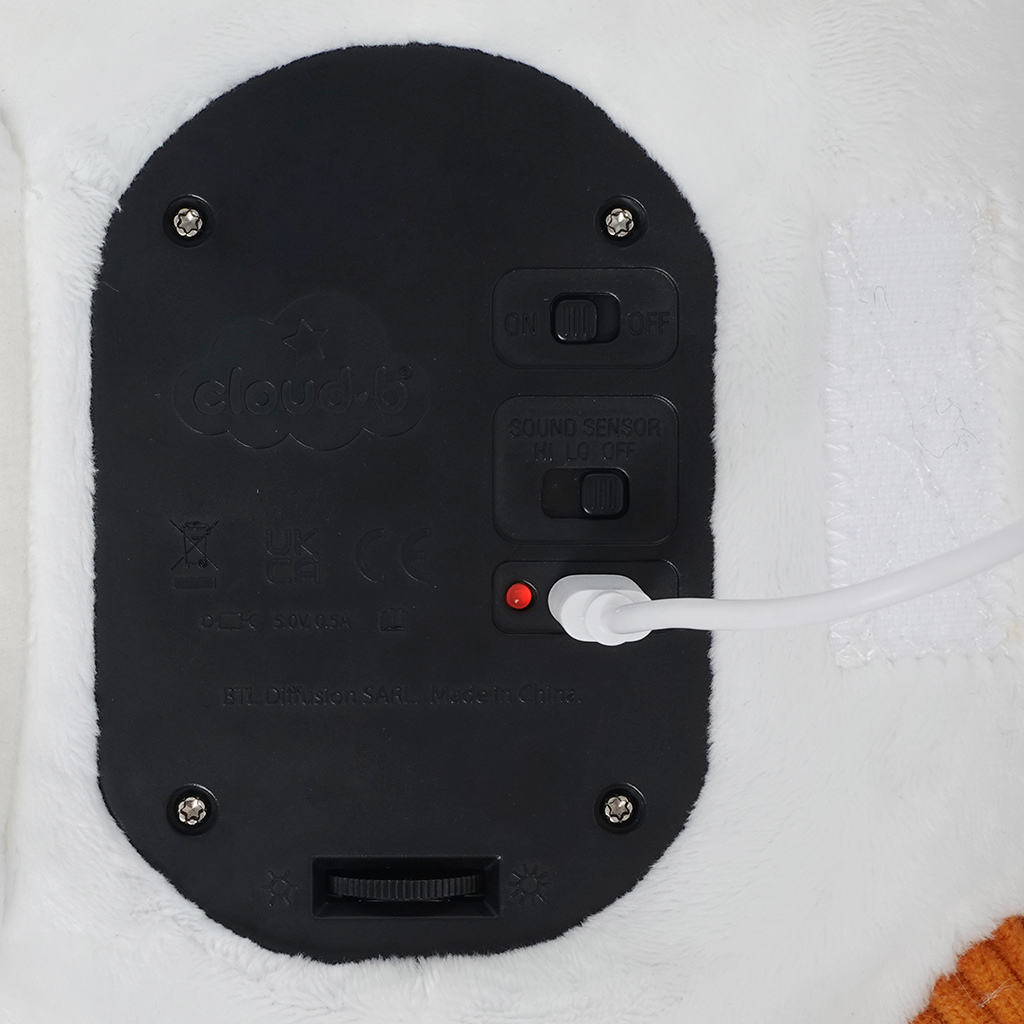 - 4 geluiden (2 rustgevende slaapliedjes & 2 oceaangeluiden).