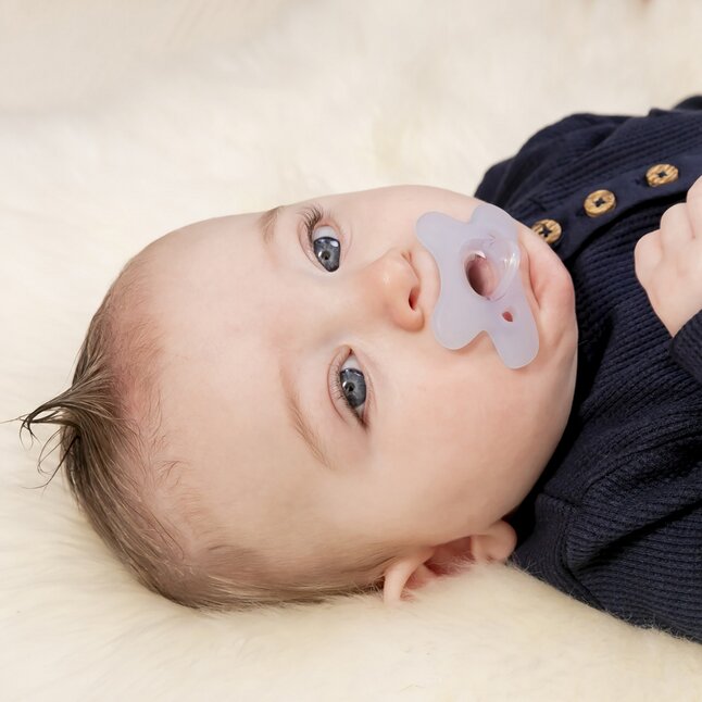 De la naissance à 6 mois. - Grâce à sa collerette en forme de papillon, la sucette est parfaitement adaptée au visage de votre bébé et laisse son nez dégagé.