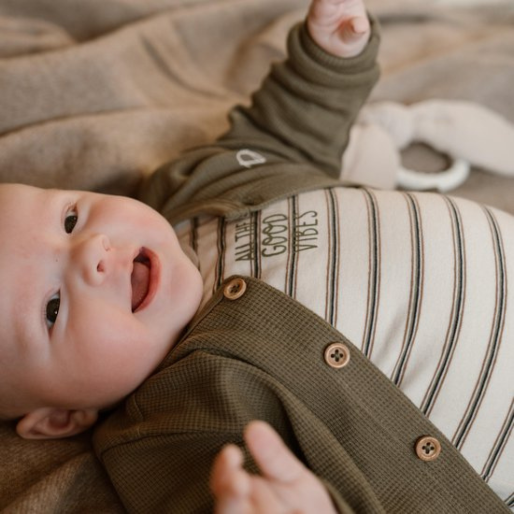 En coton biologique.- T-shirt à longues manches, pantalon & cardigan : fermeture boutonnée simple.- Avec un motif d'adorables lignes.- Fabriqué en coton biologique : idéal pour la peau sensible de votre petit & bon pour la planète.