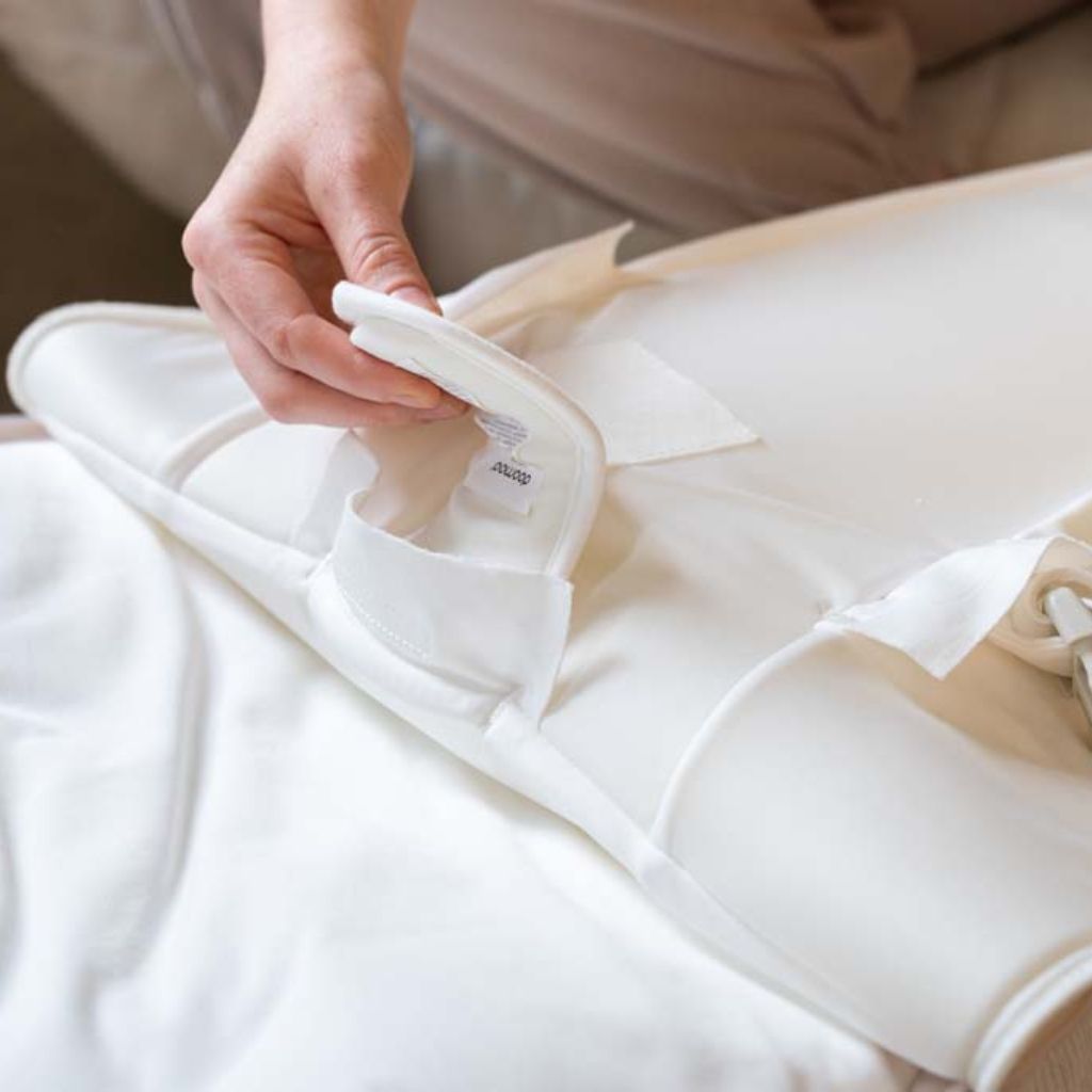 - Housse et revêtement supérieur amovibles & lavables en machine à 30 °C. Ne convient pas au séchoir.