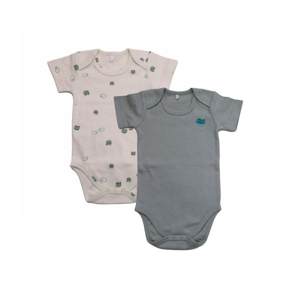 - Comprend 2 bodies : un vert uni avec une grenouille, un avec un motif de grenouilles et d'étang.
