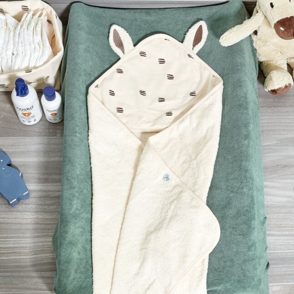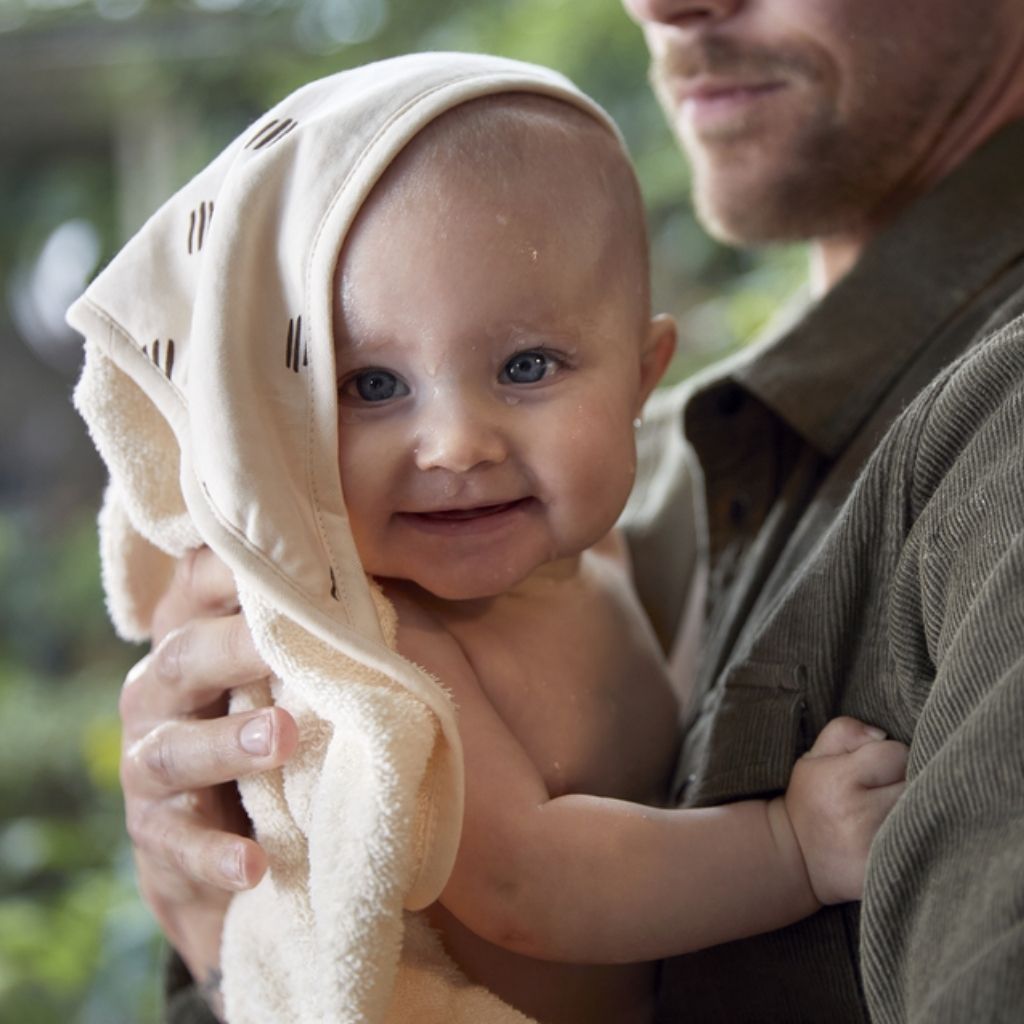 Avec une capuche et d'adorables petites oreilles de zèbre. Lg 80 x L 80 cm. En coton. Lavable en machine à 60 °C.