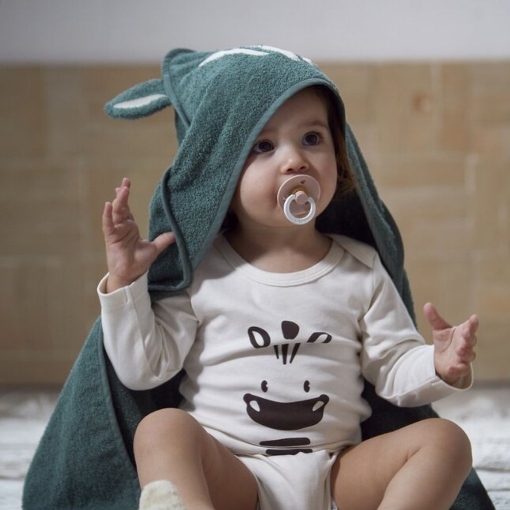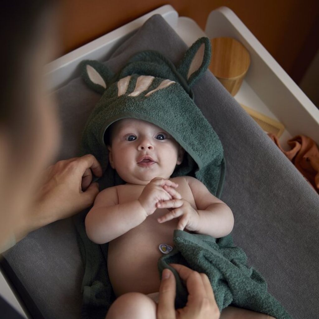 Avec une capuche et d'adorables petites oreilles de zèbre. Lg 80 x L 80 cm. En coton. Lavable en machine à 60 °C.