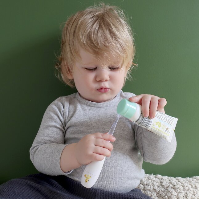 - Deux têtes de brosse fournies : tête de brosse pour bébé (de 0 à 18 mois) + tête de brosse pour jeune enfant (de 18 à 36 mois).