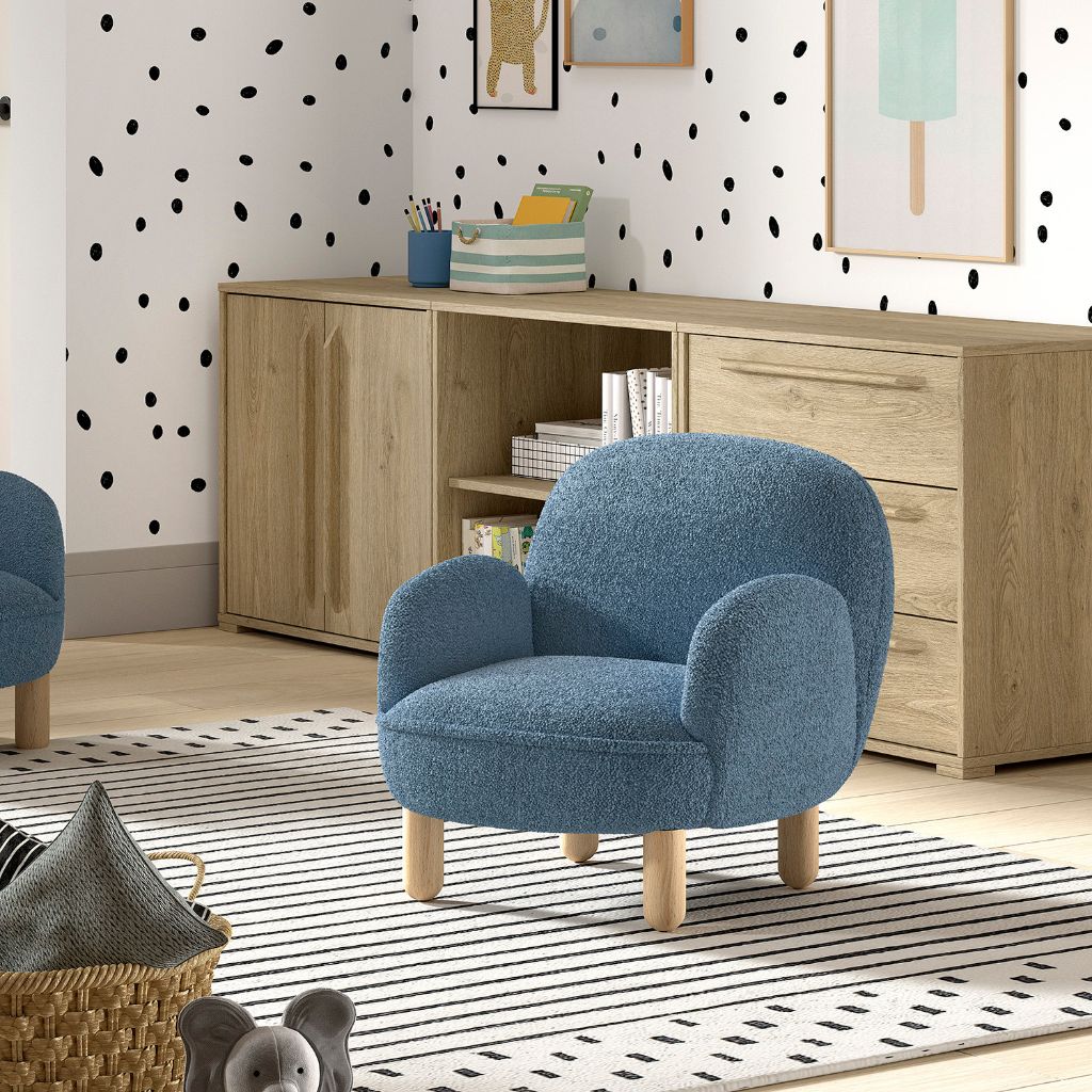 Confortable canapé JAXX Rocky dans un bleu ludique : parfait pour les moments de lecture et de rêverie. Apporte confort et style dans chaque chambre d'enfant.