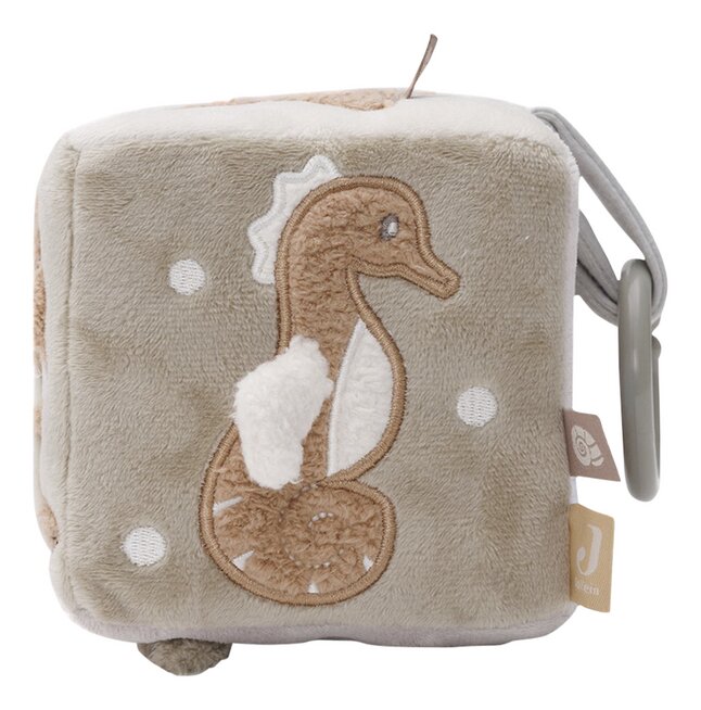 Sur le thème enchanteur de l'océan, le cube d'activité présente différentes figurines dont : une baleine, un hippocampe, une étoile de mer ainsi qu'une perle-miroir !
