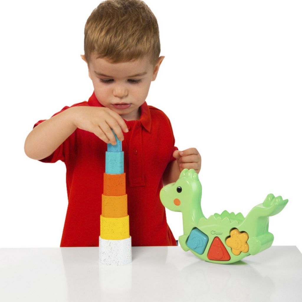 - 2 en 1: place les cylindres sur le dos du dinosaure pour qu'il garde son équilibre ou construis une petite tour avec tous les cylindres.