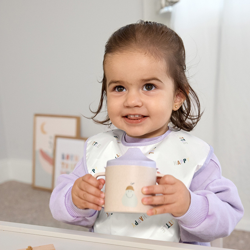 Bonne prise en main grâce aux poignées.- Couvercle avec bec verseur doté d'une valve anti-gouttes : facilite l'apprentissage et évite les renversements.