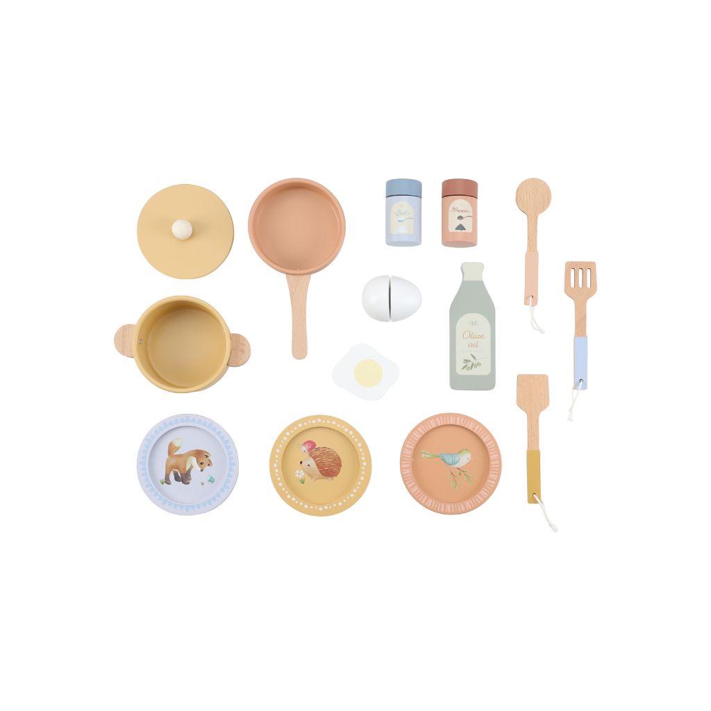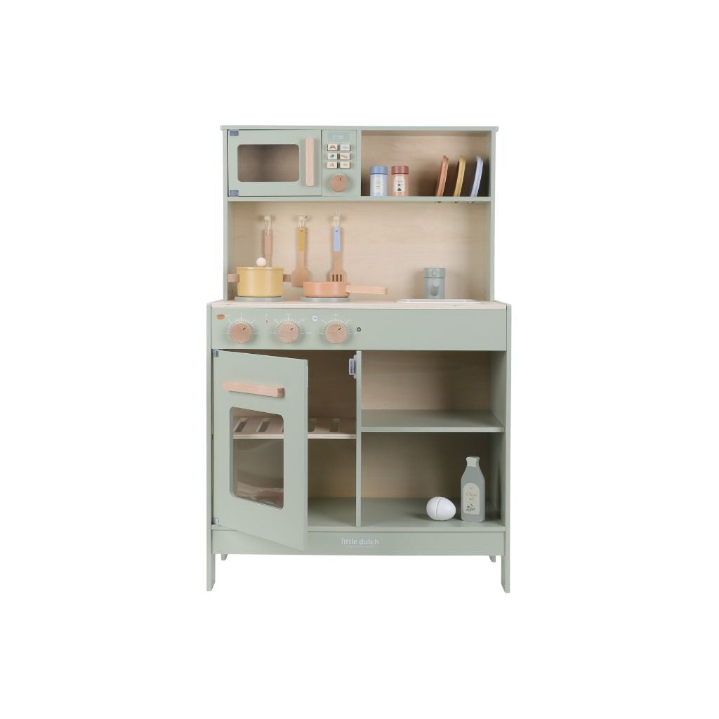 - Contient : une cuisine équipé d’un four, d’un micro-onde, d’un évier et d’une cuisinière, 3 assiettes, une casserole avec couvercle, une poêle, 3 ustensiles, 2 pots à épices, une bouteille d’huile d’olive et 2 œufs.