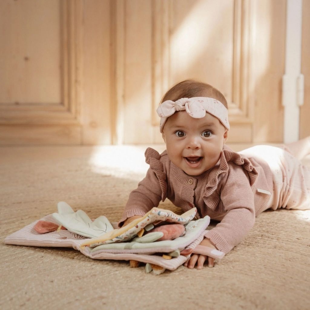 Stimule les sens & la coordination œil-main.- Nombreuses textures à toucher.- Activités qui favorisent la coordination œil-main : miroir, hochet, jouets cachés, étiquettes, et plus encore !- Couleurs douces & apaisantes.- En tissu doux.