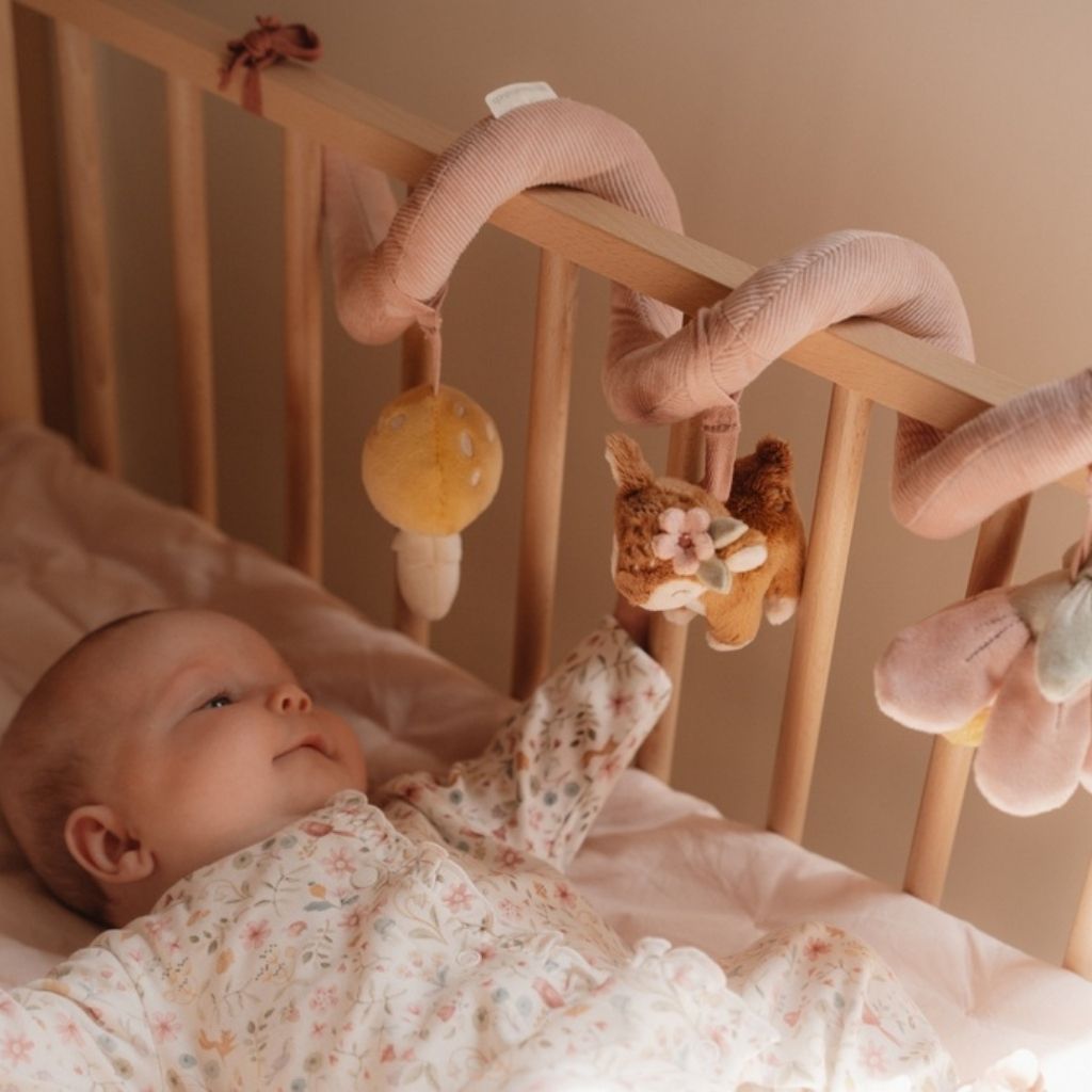 - Avec 3 jouets suspendus : une biche, une fleur et un champignon.