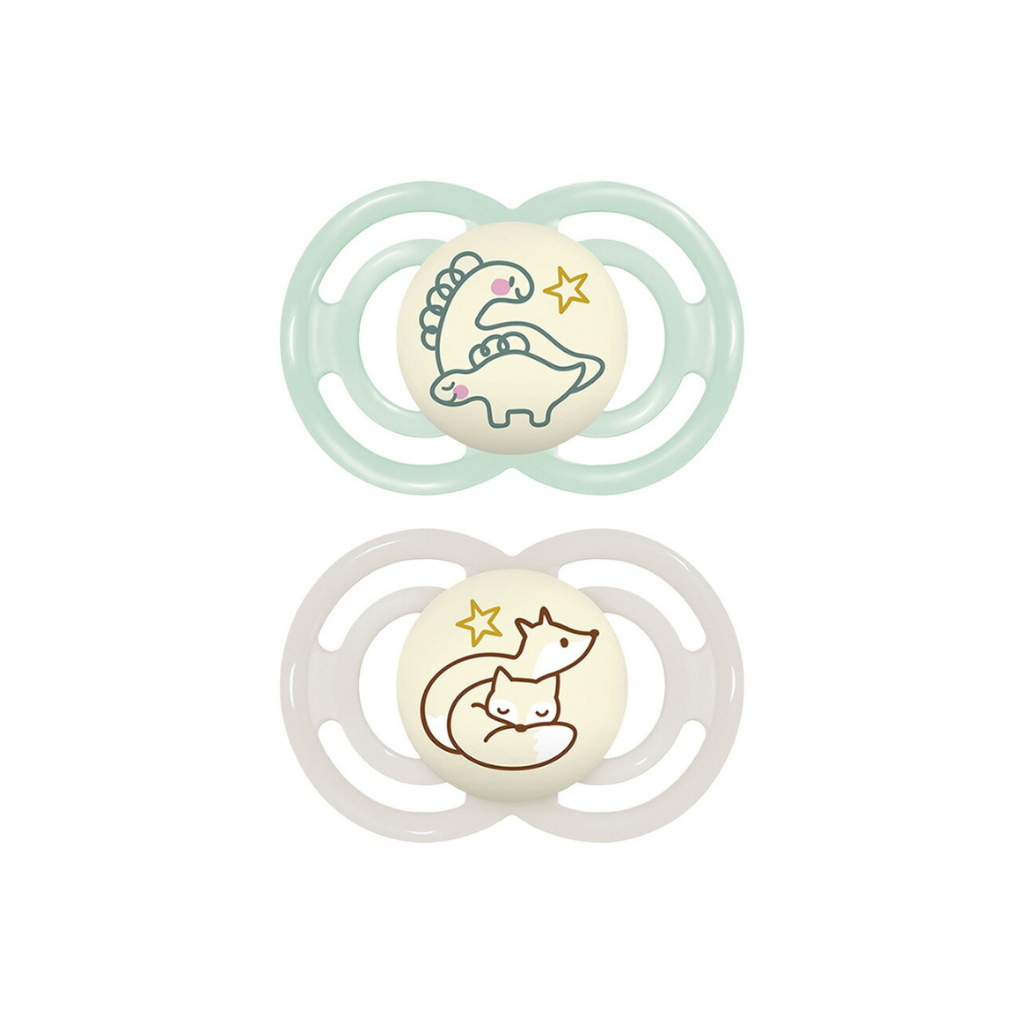 MAM Sucette + 16 mois Perfect Night Silicone beige/vert - 2 pièces