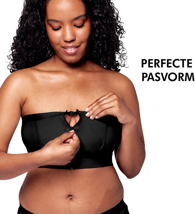 - Le bustier s'enfile et s'enlève facilement et rapidement grâce à sa fermeture éclair à l'avant.