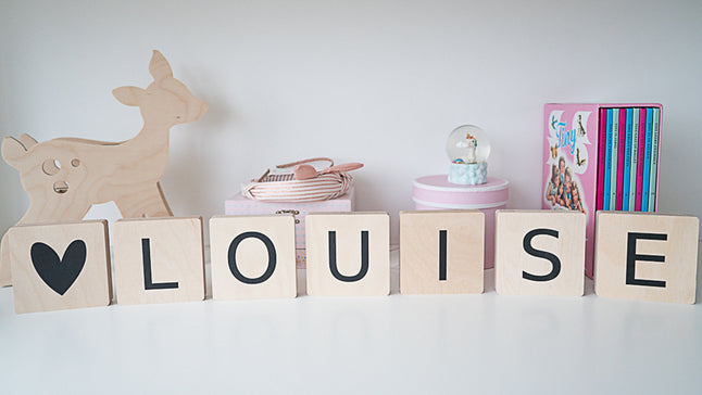 Accrochez les lettres au mur à l'aide de ruban adhésif double face, pate à fixer, etc. ou posez-les simplement sur la commode ou l'étagère murale.