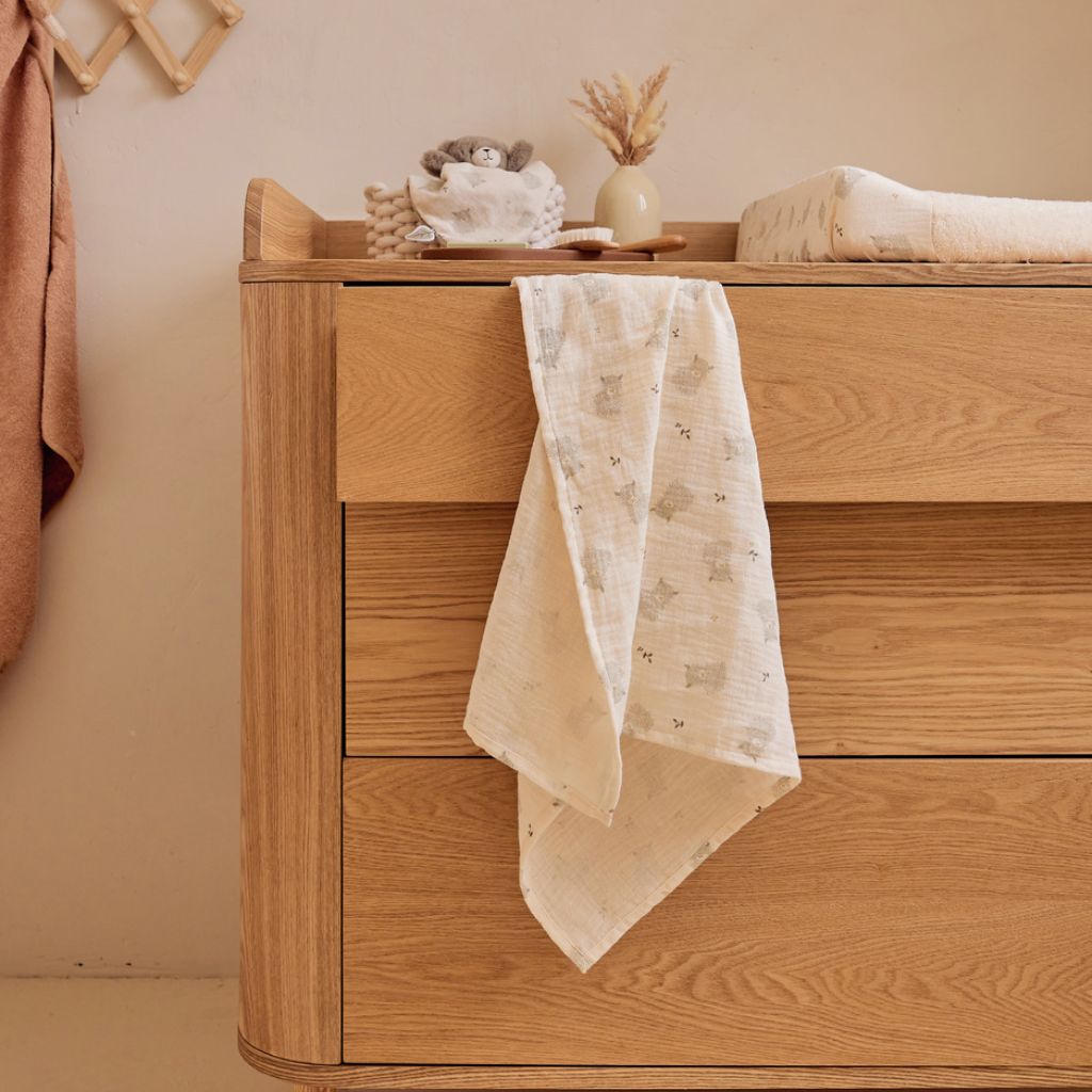 - 3 draps en mousseline à triple épaisseur de coton : imprimés du motif Fluffy & Orso.