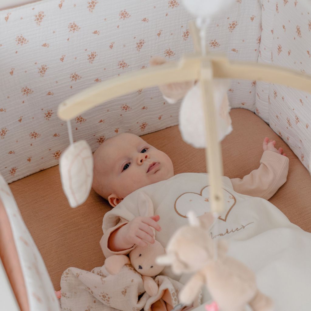 Faites de la chambre de votre bébé un havre de paix avec le tour de lit Noukie's en mousseline bio. Ajoutez-le dès maintenant à votre panier et profitez de nuits paisibles et de journées élégantes !