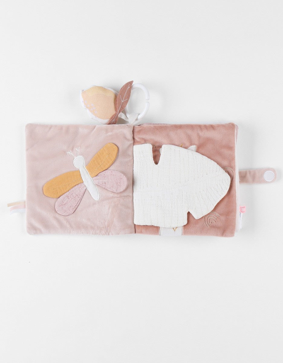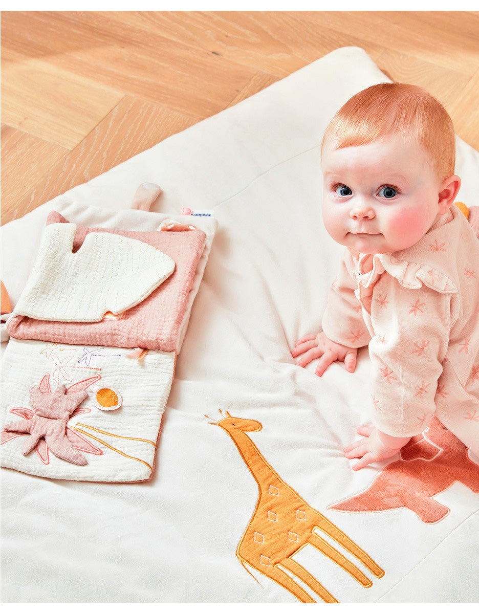 En tissu doux.Avec couineur, rabats, étiquettes, jouets de dentition, miroir et encore plus d'activités amusantes !