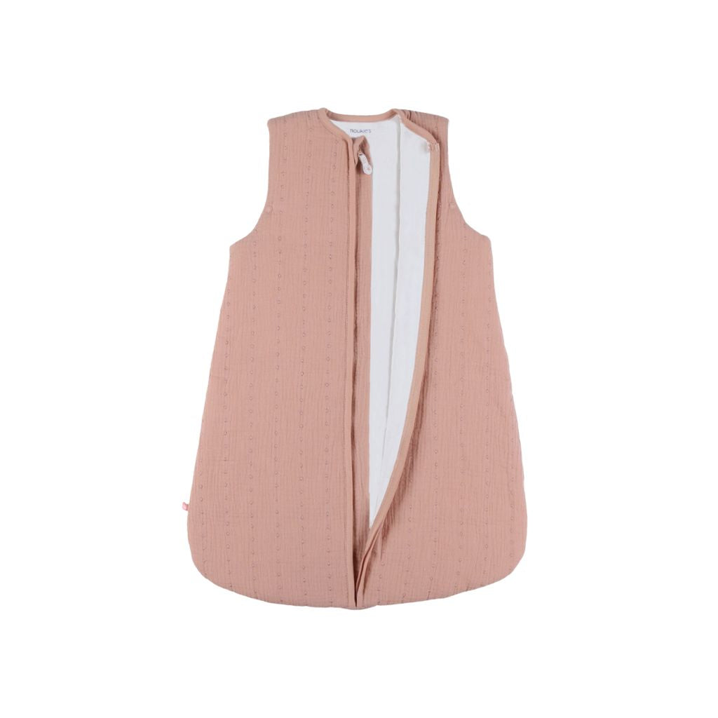 Sac de couchage Noukie's en mousseline bio rose - parfait pour les bébés de 1 à 6 mois. Facile à changer et confortable. Doux, chaud et lavable.