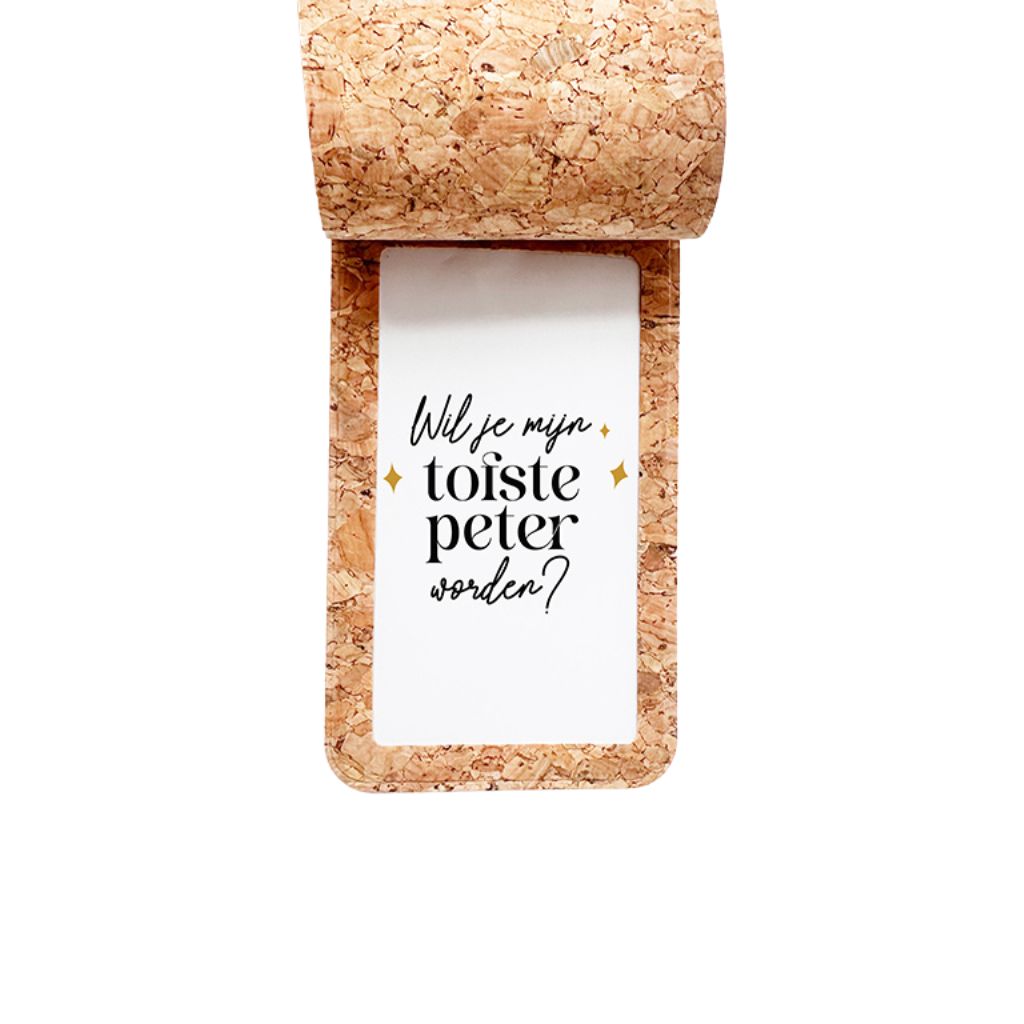 - Tekst in het Nederlands: "Wil jij mijn liefste peter worden?"
