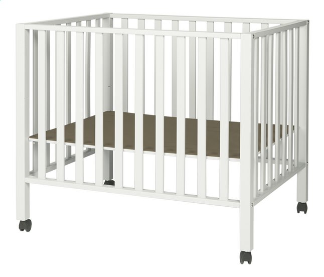 - Ce parc en hêtre laqué blanc à roulettes possède un sommier en MDF que vous pouvez ajuster selon 3 hauteurs. Vous pouvez descendre le fond au fur et à mesure que votre bout de chou grandit et devient plus entreprenant.