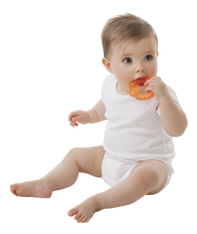 À faire refroidir au réfrigérateur. En cas de gencives douloureuses, passez les jouets au réfrigérateur pour apporter un peu de fraîcheur et adoucir la douleur de Bébé.