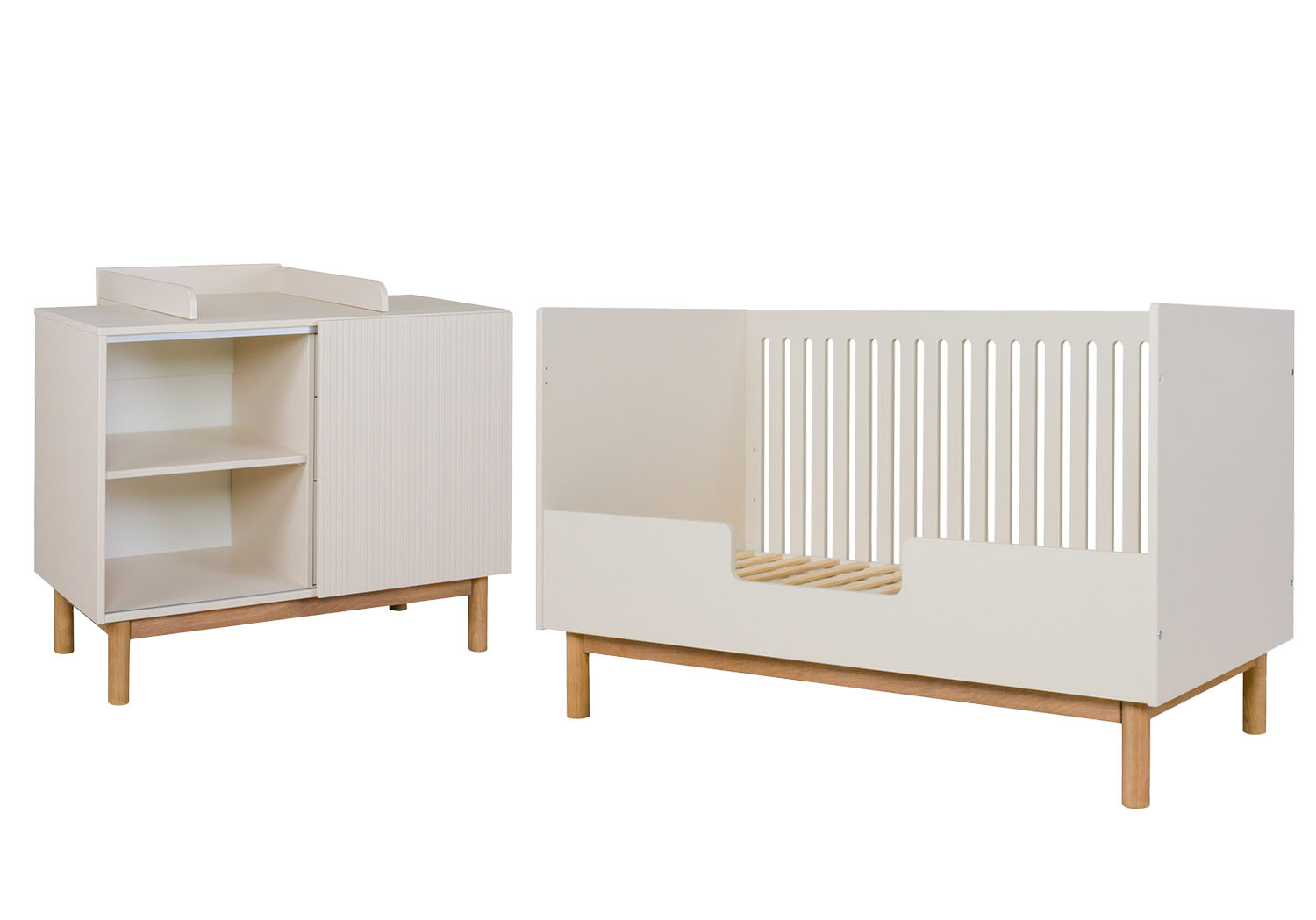 Quax Chambre de bébé 2 pièces (lit évolutif L 140 x Lg 70 cm + commode avec rallonge) Mood Clay