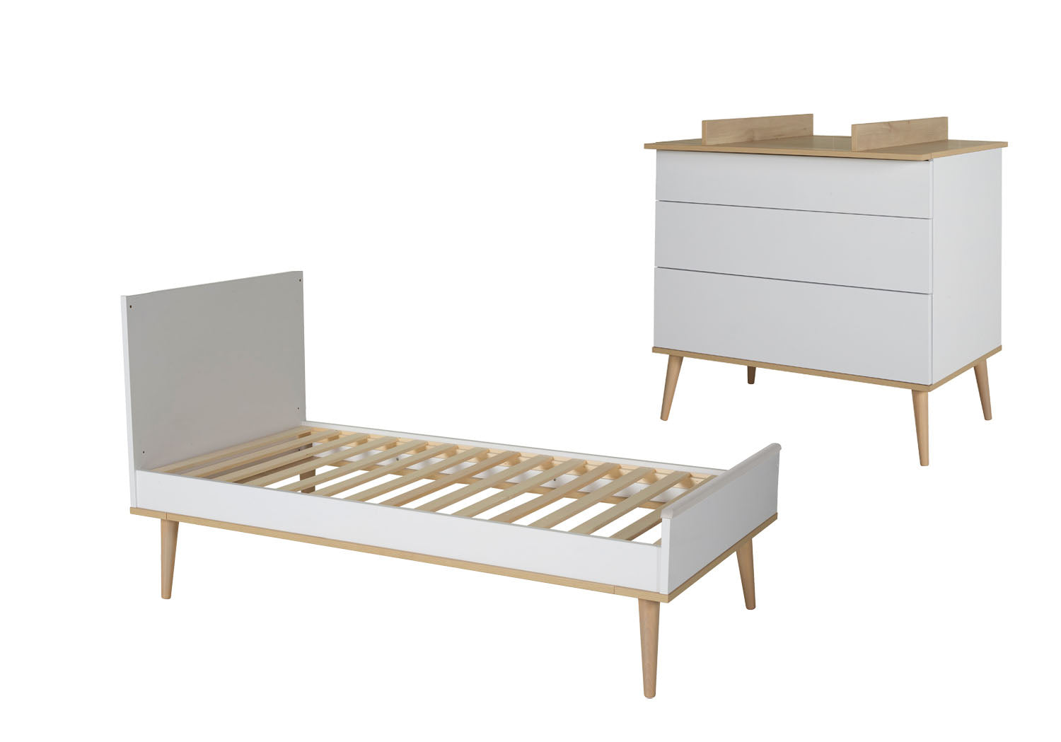Quax Chambre de bébé 2 pièces (lit évolutif L 140 x Lg 70 cm + commode) Flow White