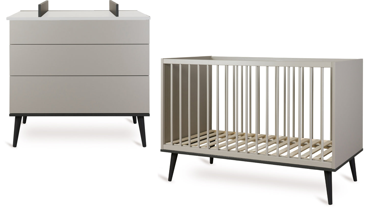 Quax Chambre de bébé 2 pièces (lit L 120 x Lg 60 cm + commode) Flow Stone