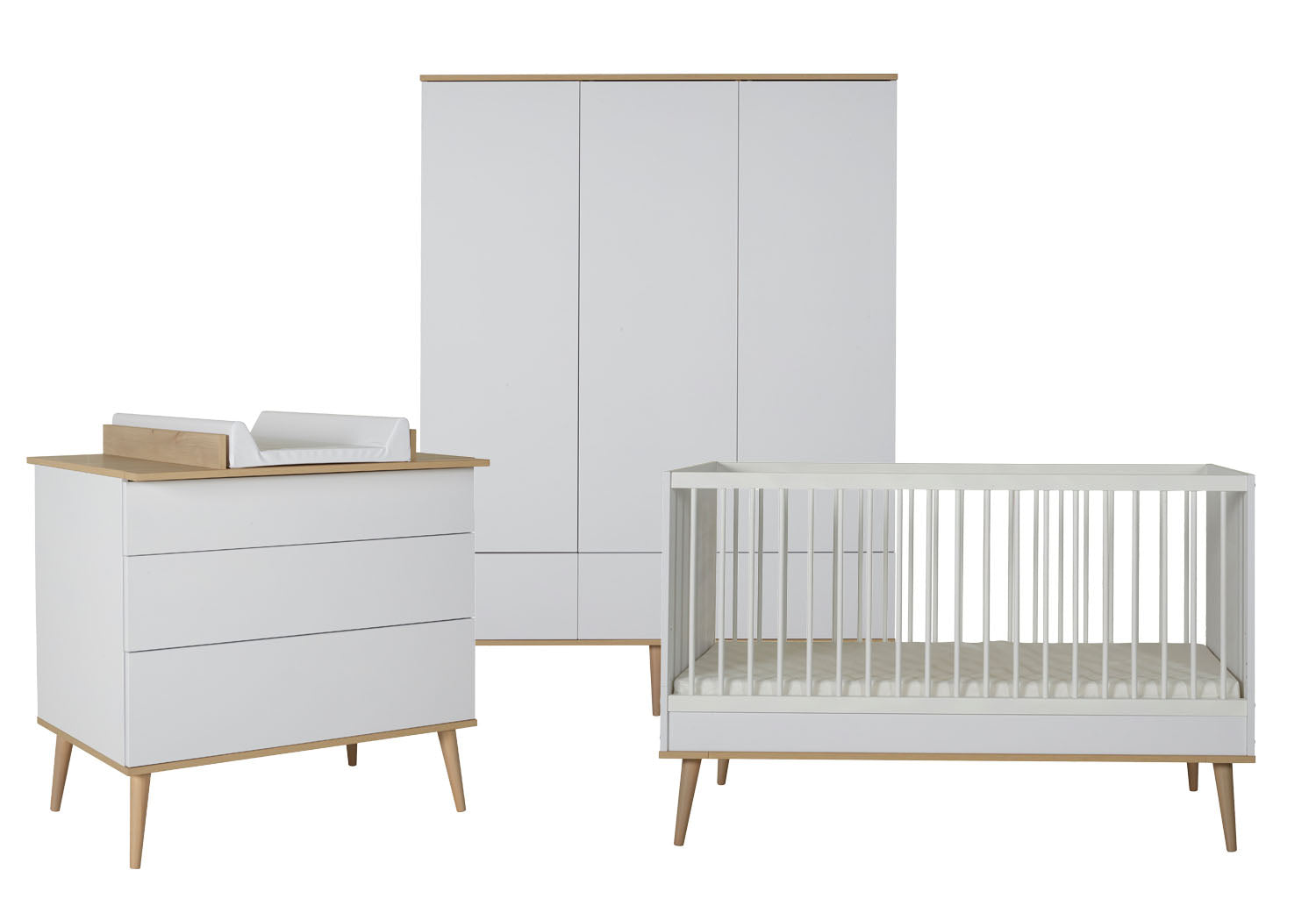 Quax Chambre de bébé 3 pièces (lit évolutif L 140 x Lg 70 cm + commode + armoire 3 portes) Flow White