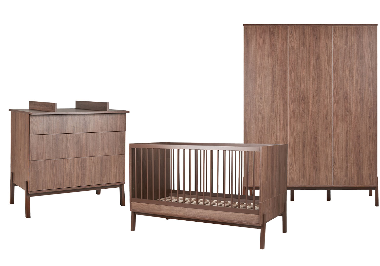 Quax Chambre de bébé 3 pièces (lit L 140 x Lg 70 cm + commode avec rallonge + armoire 3 portes) Ashi Chestnut