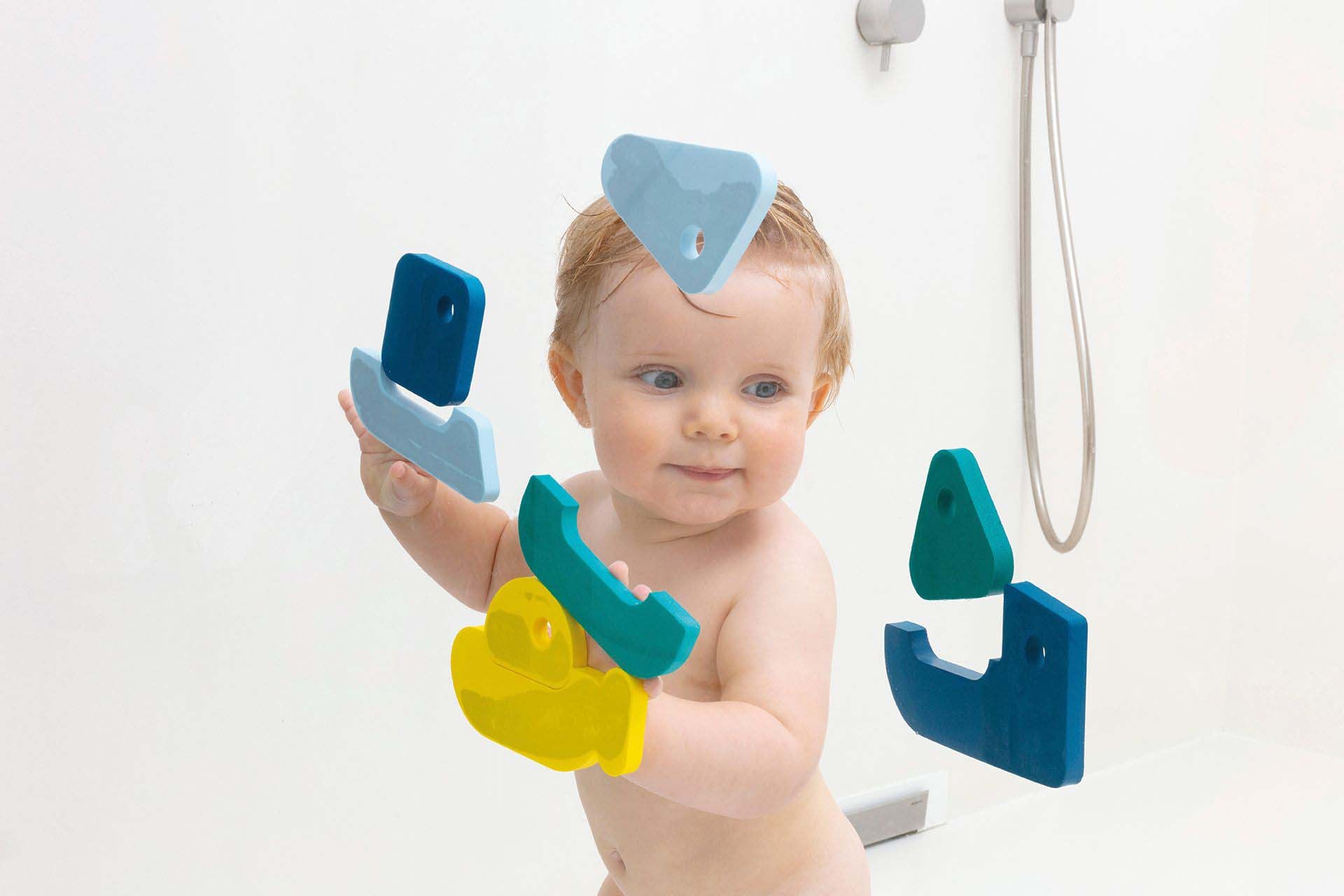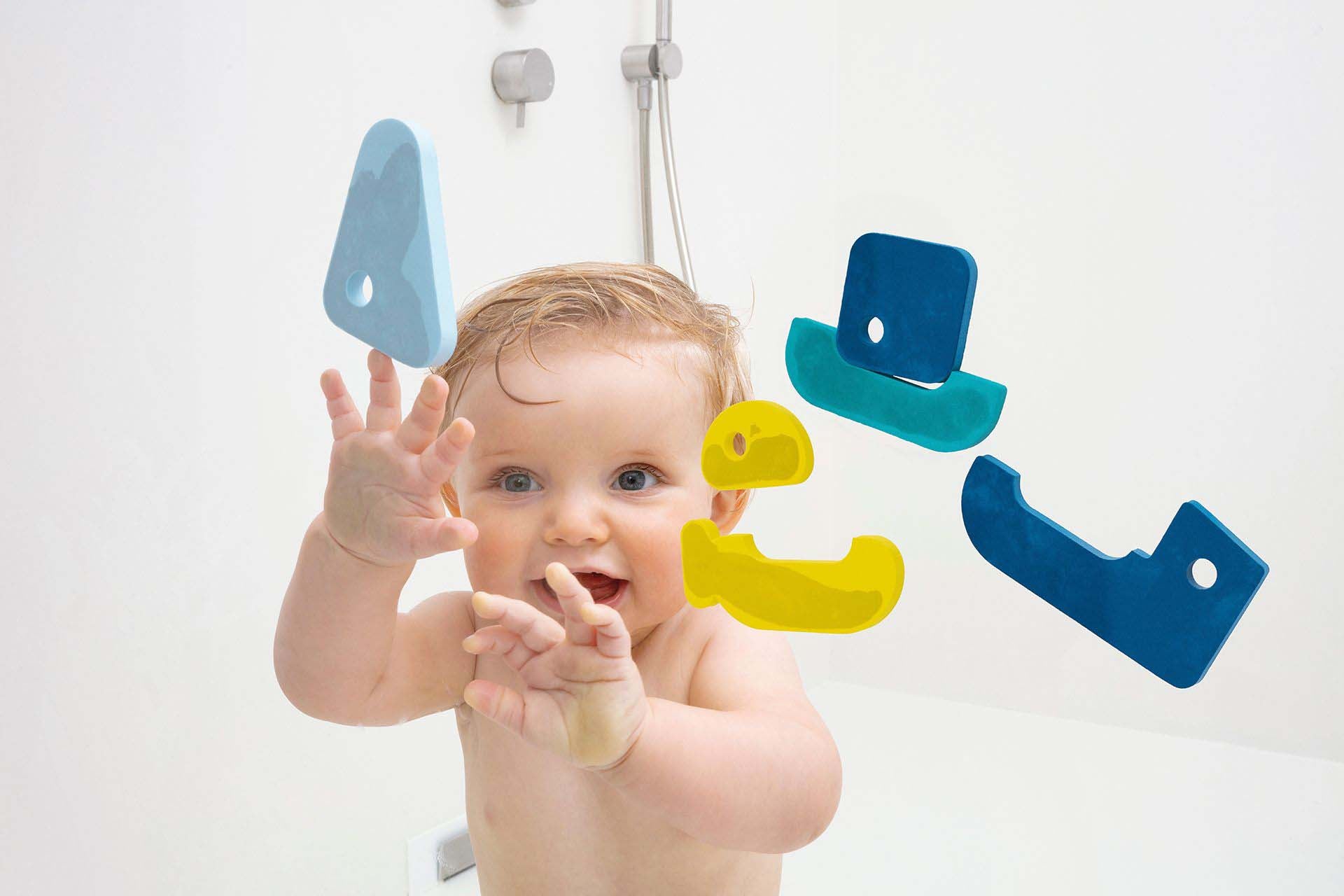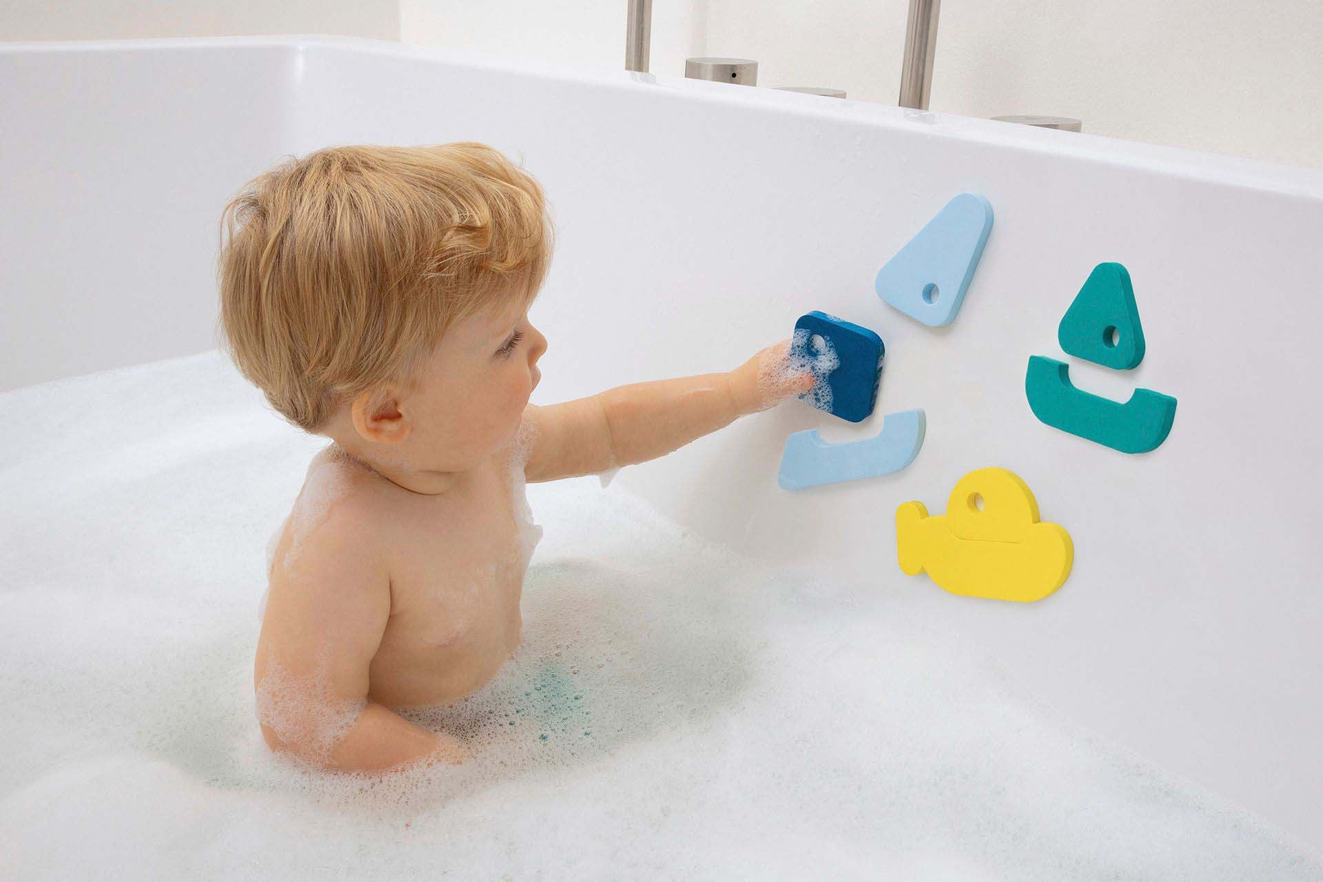- Fabriqué en EVA recyclé : mousse douce qui flotte sur l'eau & qui, une fois mouillée, colle sur le bord du bain.
