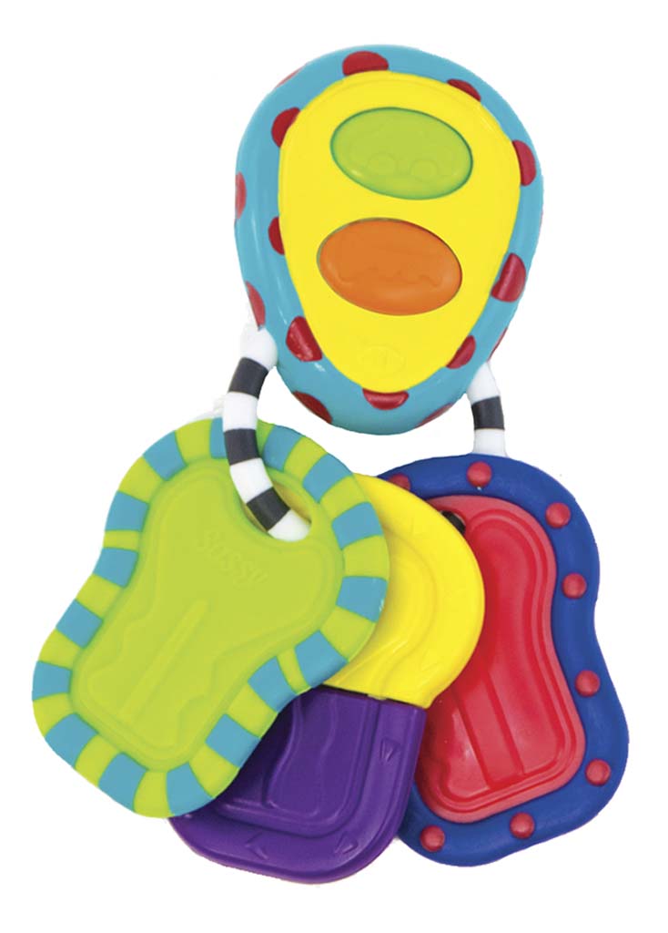 De felle kleuren en verschillende texturen stimuleren je baby's zintuigen. De sleutels maken geluidjes als je baby erop drukt. Batterijen inbegrepen (niet vervangbaar). Vanaf 3 maanden.
