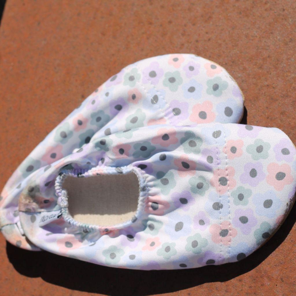 Fini les petits pieds tout nus grâce aux chaussons Flower de Slipstop ! Idéal à la piscine, à la plage, à la maison, dans la plaine de jeu...