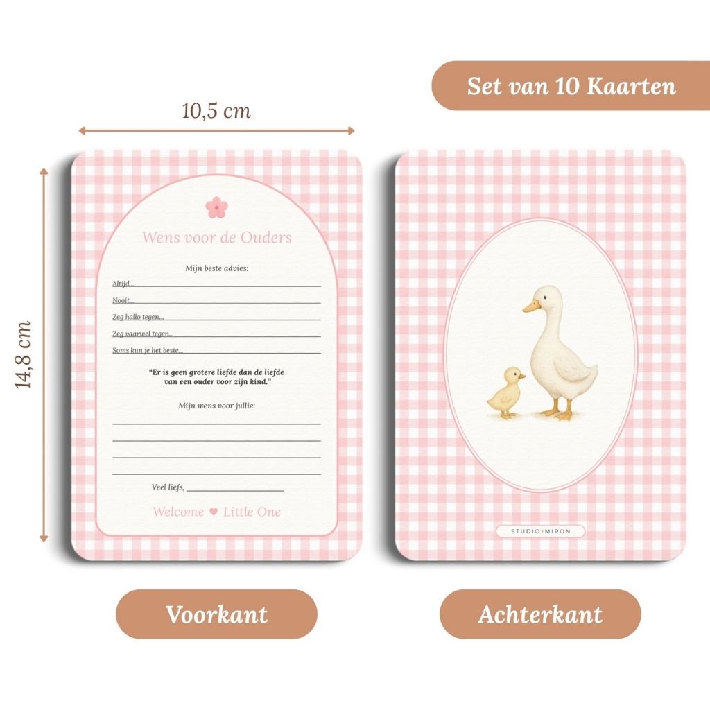 Studio Miron Cartes à remplir Souhaits pour les parents Vichy Rose NL - 10 pièces