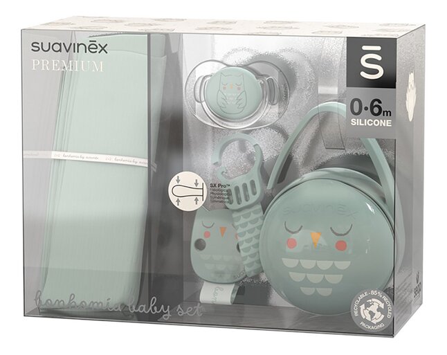 - 1x attache sucette avec ruban adhésif pour éviter que la sucette ne tombe ou ne se perde.