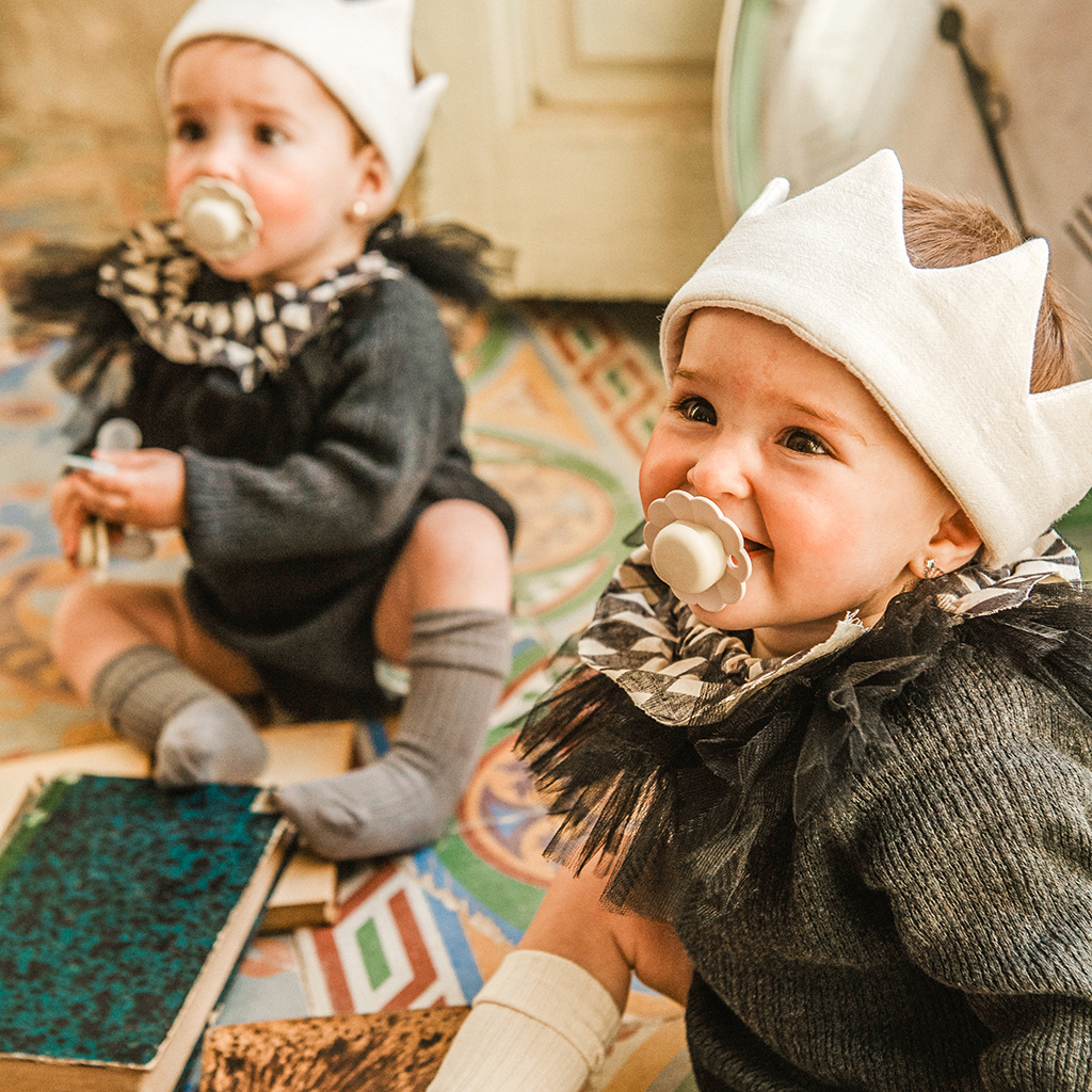 - Forme arrondie, ergonomique & convexe : évite les chocs avec le nez et permet à l'air de circuler librement entre la sucette et les narines.