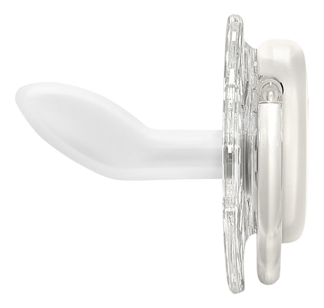 + 18 mois. - Sucette physiologique : imite la forme de la cavité orale et simule la forme de voûte que forment le palais et la langue.