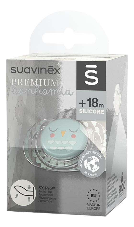 Suavinex Sucette + 18 mois Bonhomia Flat Feather physiologique Green