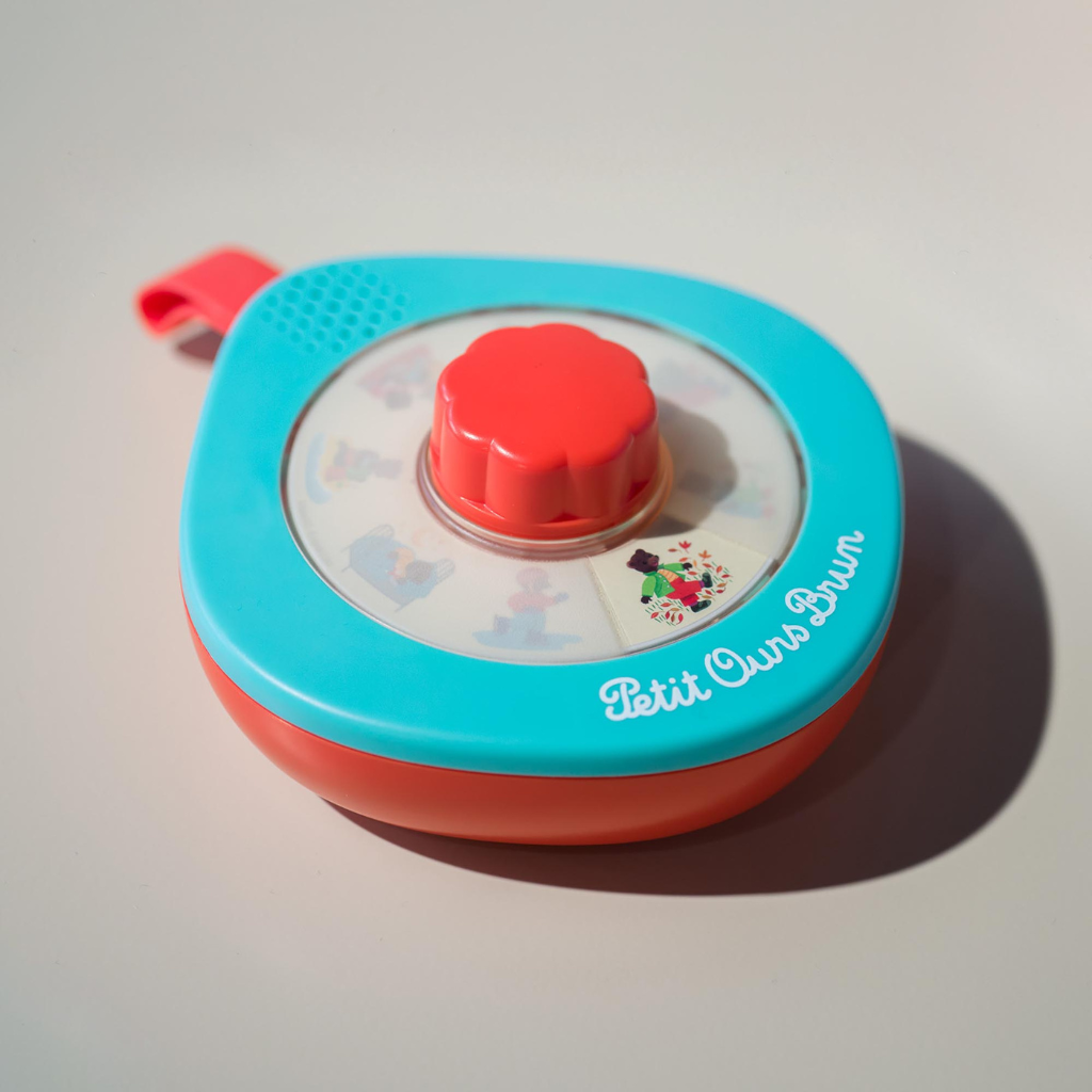 • Il leur suffit de tourner le bouton, de s'arrêter sur le personnage de Petit Ours Brun, puis d'appuyer une, deux ou trois fois sur le bouton, selon l'histoire qu'ils souhaitent écouter.