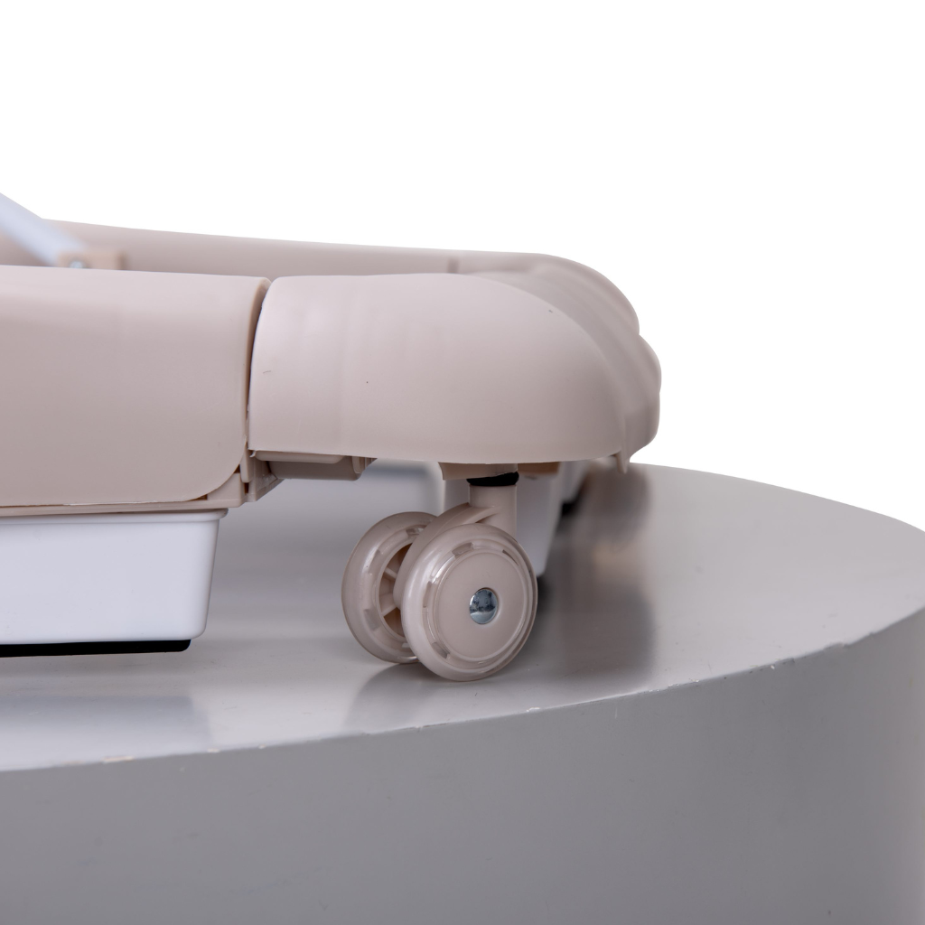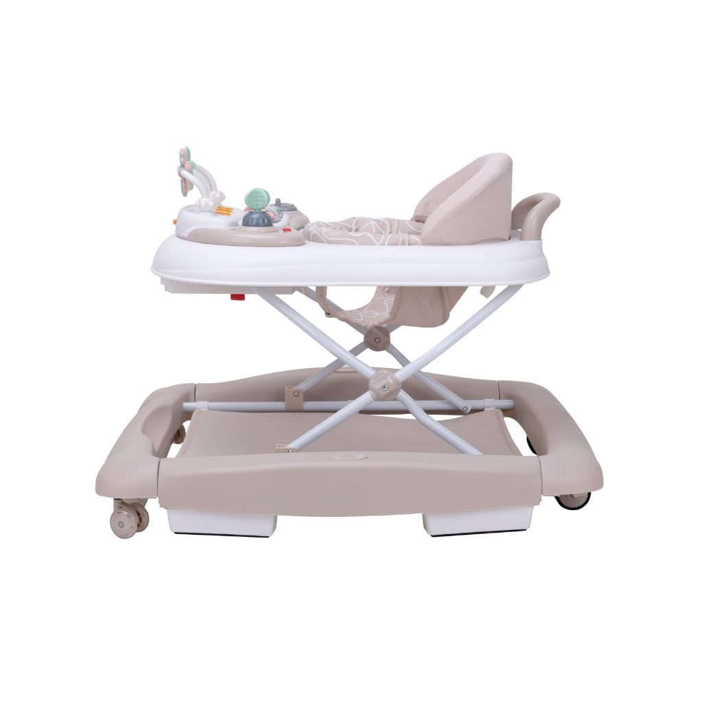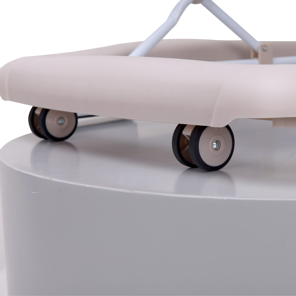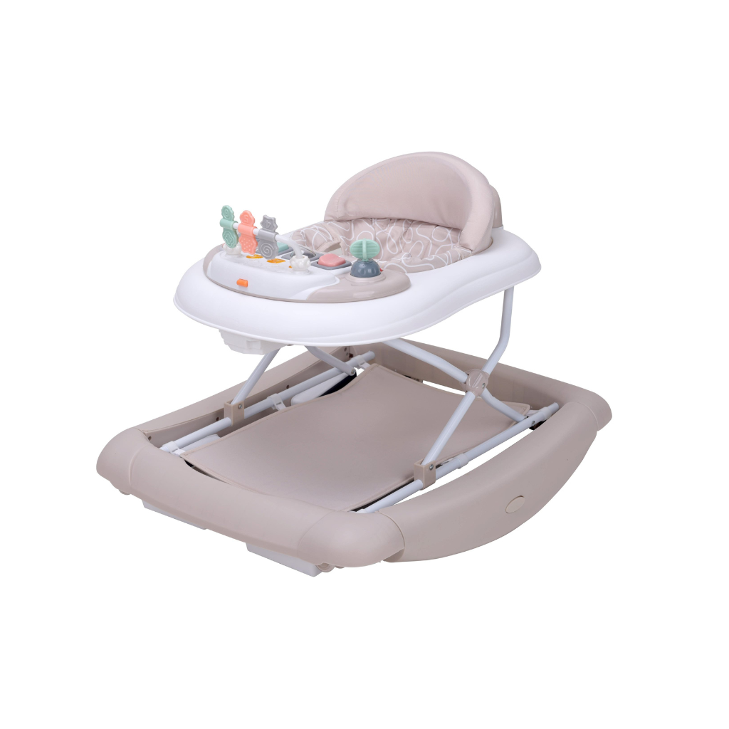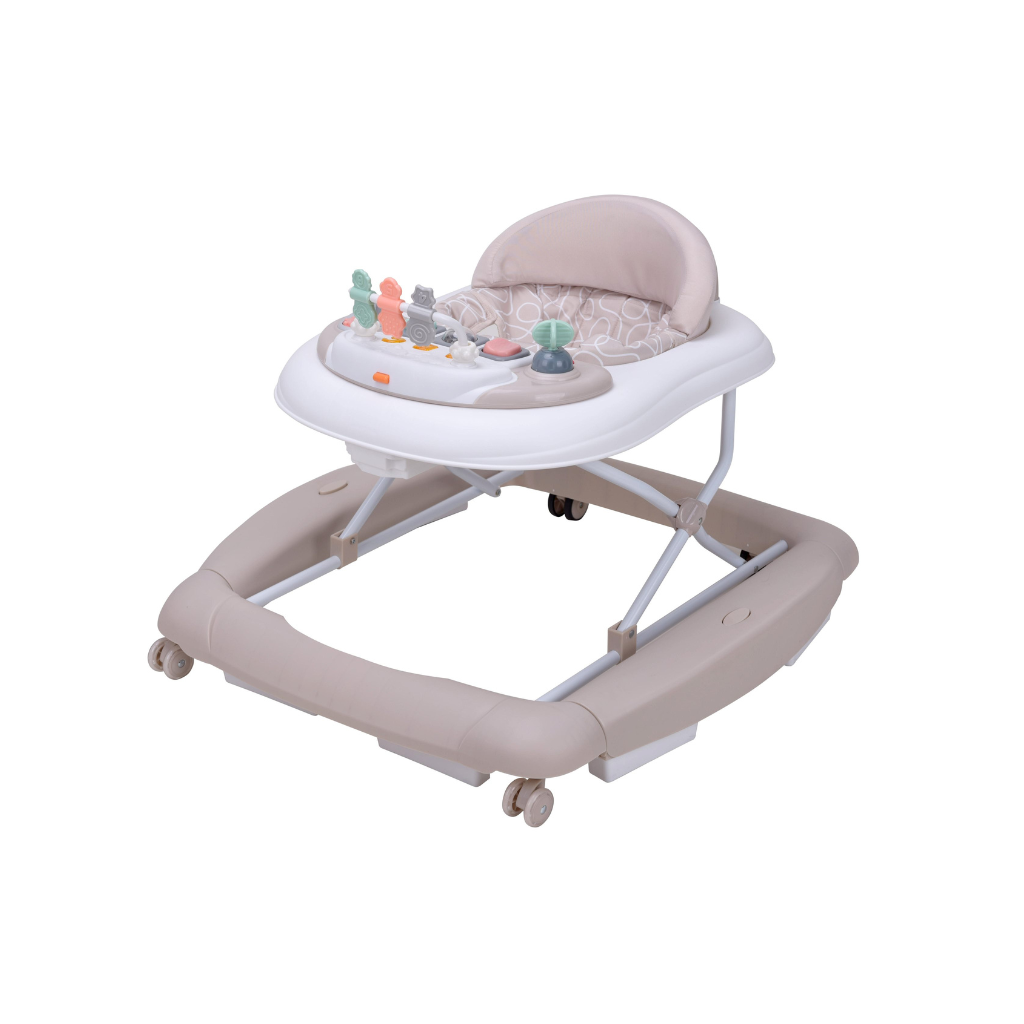 Met remmen, voetensteun en speelblad. - Loopstoeltje met 4 wielen, waarvan de voorste 2 kunnen zwenken.